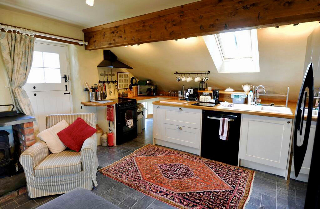 The lounge has a wood burner and several eye-catching original features, original local paintings, and numbered prints.